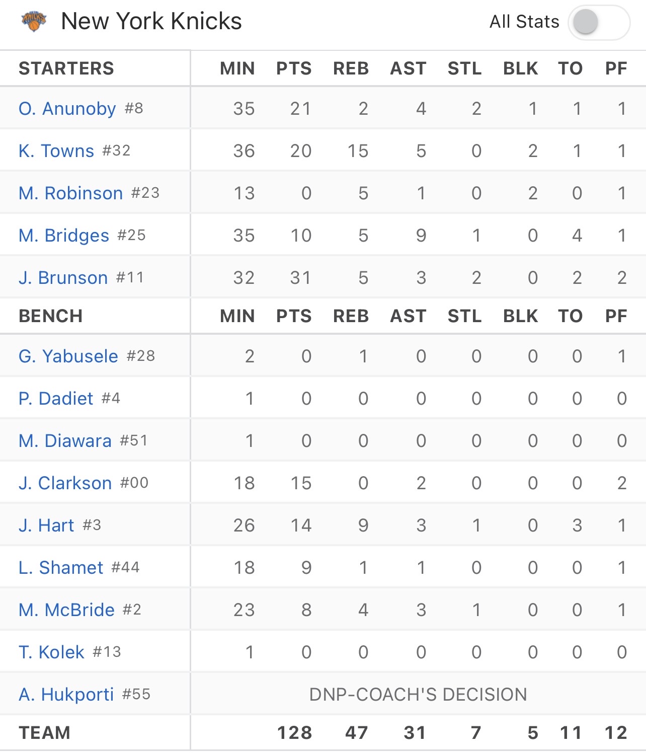 3pts de Jones qui ne changeront pas la donne. Victoire sur le score final de 128-116. Retour gagnant au MSG pour des Knicks bien plus convaincants quand ils retrouvent de l’adresse au shoot et surtout quand ils peuvent aussi compter sur un véritable apport du banc. Une victoire rassurante.