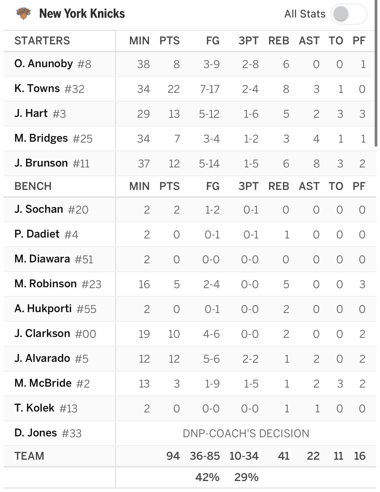Dans le moneytime il ne vas pas y avoir de comeback espéré, 84-101 à 6:37 de la fin. KAT va tenter de loin, Mike Brown va tenter de dynamiser le jeu avec Alvarado mais sans grande réussite. Le retour au complet du starting five ne va pas non plus éviter ce qui se profilait déjà depuis 3 quarts temps. Défaite sur le score final de 94-111.