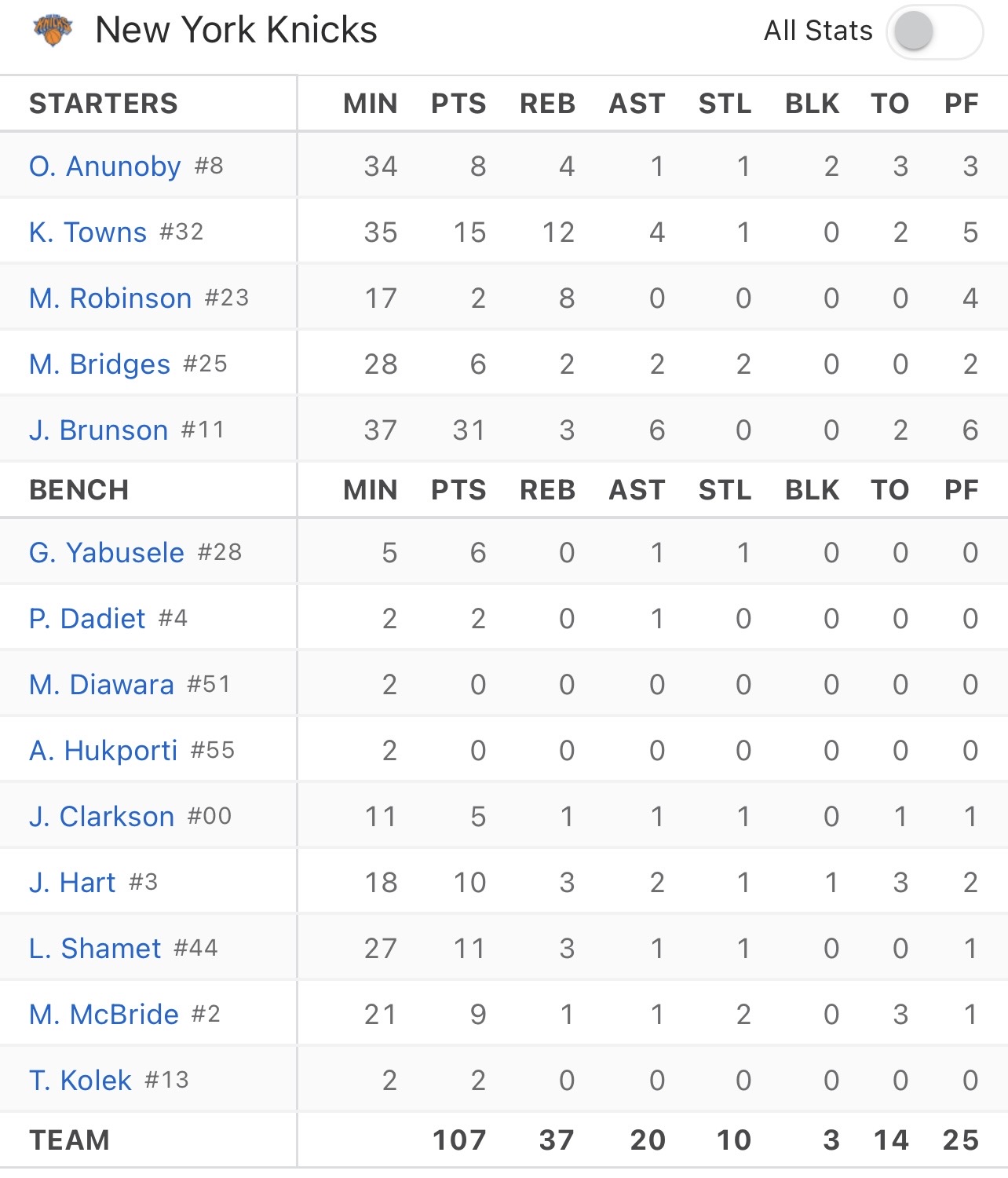 Pour la première fois de la saison les Knicks sont battus dans leur salle. Le back2back peut être un facteur d’explication mais il n’est pas le seul. Un attaque nettement moins rayonnante, une défense qui n’a pas tenir le choc, des titulaires en retrait à l’exception de JB, un banc moins en réussite à l’exception de Shamet et pourtant en face Banchero n’a joué que 12 minutes avant de sortir pour blessure.