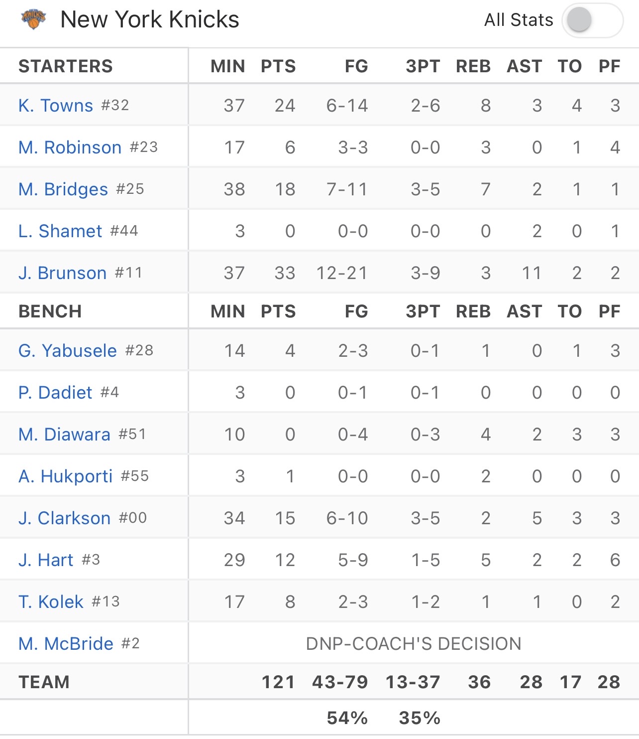 Le jeu reprend avec un 3 manqué par Hart, rebond Knicks mais sans panier. Bane drive et obtient un and one qui n’arrange en rien les affaires des New Yorkais. 111-127 à 3:54, ça sent le garbage time. JB retarde l’échéance avec un shoot à 2, Clarkson drive et Carter Jr prend sa dernière faute. JB obtient un coup de sifflet pour finir avec un 2/2 aux LFs.