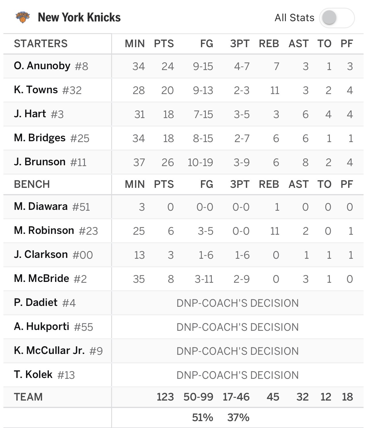 Victoire sur le score final de 123-114, retour gagnant de Josh dont l’énergie communicative aura fait évidement et comme souvent la différence. Un succès à l’extérieur loin d’avoir été simple à aller chercher mais un beau succès face à une autre des équipes en forme du moment. Les Knicks mettent ainsi fin à la série de 5 win des Blazers et peuvent souffler un peu avant de poursuivre leur road trip à l’Ouest.