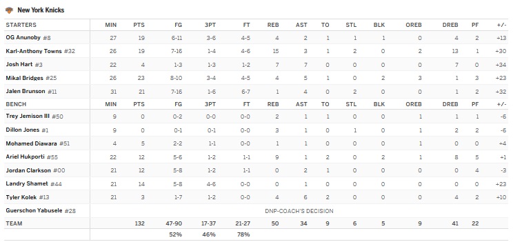 Malheureusement 2 chevilles qui tournent (Mo puis Josh) et un back2back qui attend déjà les New Yorkais face à des Nuggets également en back2back (défaite à Detroit)